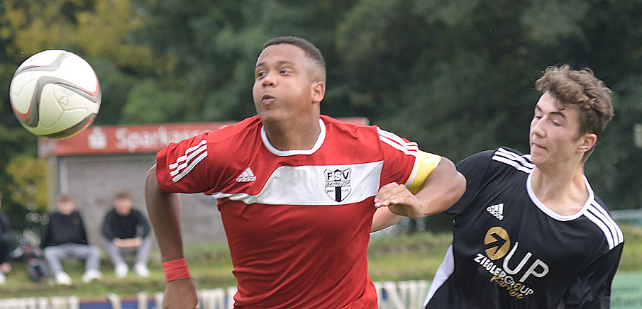 Der entscheidende Treffer im Verfolgerduell: FSV-Mann Raled Böhme (re.) schlug in der Nachspielzeit zu.