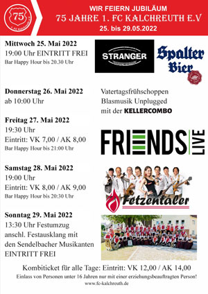 "Platz vier wäre das beste Saisonergebnis für den Verein, das haben wir uns intern als Ziel gesetzt", verrät Trainer Christopher Kraus. Wenn diese Marke nach dem letzten Spieltag am 21. Mai (Gastspiel in Adelsdorf) erreicht werden sollte, würde die 1. Mannschaft noch einen weiteren Grund zu den Feierlichkeiten beisteuern, die anlässlich des 75-jährigen Vereinsjubiläums vom 25. bis 29. Mai stattfinden sollen. Eigentlich hatte der FCK schon 2021 sein drittes Vierteljahrhundert abgeschlossen, doch aufgrund der Pandemie-Umstände hatte man sich frühzeitig darauf verständigt, das Festprogramm um ein Jahr zu verschieben - in der Hoffnung, dass ein entsprechender Rahmen 2022 nun möglich wird.
