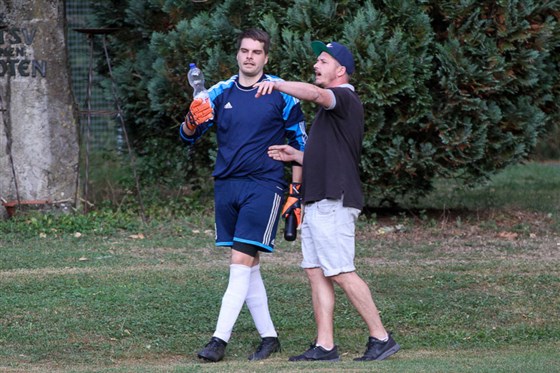 Dominik Friesacher gibt Anweisungen an seinen Keeper Kai Ferstl.