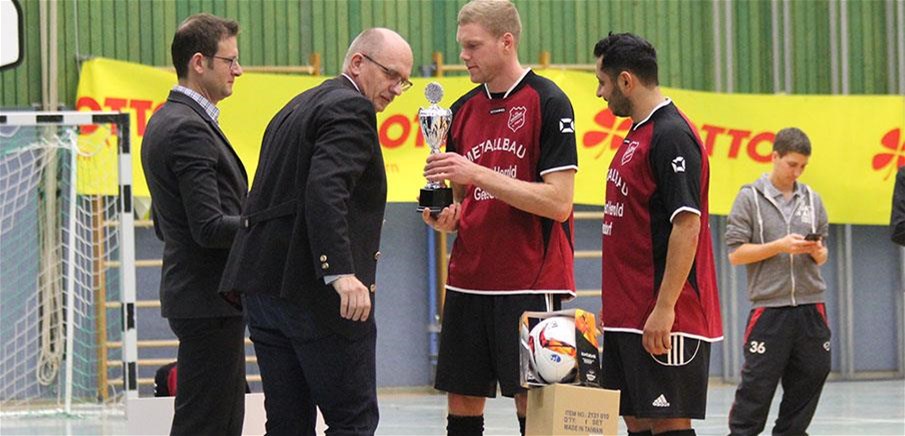 2017 durfte Gottfried Bindrim in Eltmann den FC Geesdorf als Hallenkreismeister ehren.