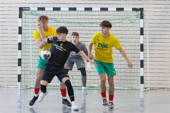 Vorsichtiges Abtasten auf beiden Seiten, bestimmte die Anfangsphase des Endspiels um die Hallenbezirksmeisterschaft in Oberfranken. Das Duell in der Gruppe ging knapp an Grün-Weiß Frankenwald. So waren die Bamberger gewarnt. Beide Keeper erwiesen sich in den zwölf Minuten als starker Rückhalt. zudem war es das fairste Spiel des Tages, denn beide Mannschaften kamen ohne Foulspiel aus. So ging es Endspiel ins Sechs-Meter-Schießen. Don Bosco-Keeper Daniel Kreutzer hielt seine drei Strafstöße, während seine Mitspieler verwandelten