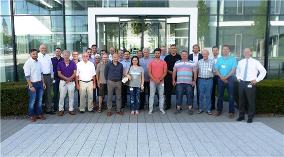 Gruppenbild der Teilnehmer vor einem Bamberger Brose-Betriebsgebäude (f: Sascha Dorsch/FCE)