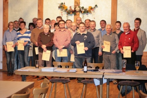 25 Jahre Mitgliedschaft (Vereinsnadel mit silbernem Kranz): Wolfgang Eichert, Fritz Falkner, Sabine Hofmann, Anita Kohl, Elke Lindner, Manfred Rupprecht, Ingrid Steger, Markus Fritsch, Nicole Gsell, Birgit Humsberger, Stefan Leisner, Wolfgang Schleicher, Ralph Strobl.