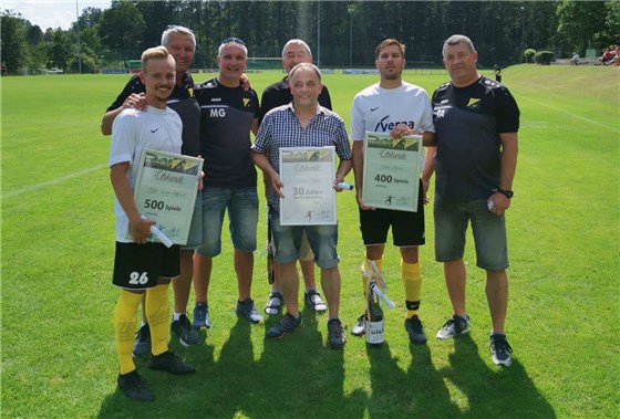 Die Verantwortlichen der Spvg Eicha haben anlässlich des ersten Heimspieles gegen den TSV Rossach zwei verdiente Spieler sowie ihren langjährigen Spielleiter Matthias Kotschy geehrt. "Matze" Kotschy hat die Mannschaften dabei über 3 Jahrzehnte Woche für Woche betreut und kümmert sich, als gelernter und bekannter Koch mit Leidenschaft, im Verein ab sofort mit um die Sportheim-Bewirtschaftung.