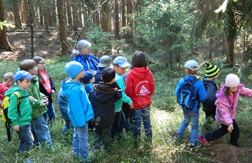 Am Sonntag, 19. April, erlebten die jungen Kicker von der Kronach die Bergbaugeschichte da, wo sie sich tatsächlich zutrug: Auf dem Goldberg. Geopark-Rangerin Annette Taubenreuther erklärte den Jungs und Mädels, wie der Goldbergbau im Mittelalter entstand. Über eine Stunde lang erkundeten die G-Junioren das alte Revier, in dem sich heute noch viele Spuren des über Jahrhunderte betriebenen Bergbaus finden – zum Beispiel die Pingen, trichterförmige Gruben, die sich etwa an alten Schächten gebildet haben und die Wanderern gefährlich werden können. Zum Abschluss der Führung machte sich unsere U7 sogar noch auf Schatzsuche und hatte sich damit eine Stärkung redlich verdient. Die gab es dann beim Infohaus am Goldberg, wo ein Büffet mit Deftigem und Süßem bereit stand. "Ein großes Dankeschön an Marion Dörnhöfer, die diesen Ausflug organisiert hat und an alle Eltern, die für Speis und Trank gesorgt haben", freute sich Trainer Michael Schuster. Ebenso bedankte er sich bei der Bäckerei Becks Backstadl, die Brötchen und Laugenstangen spendierte.
