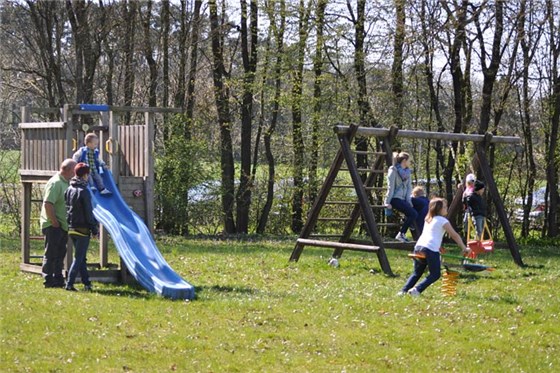 Sandkasten , Schaukel , Wippen , Kletterwand , Torwand