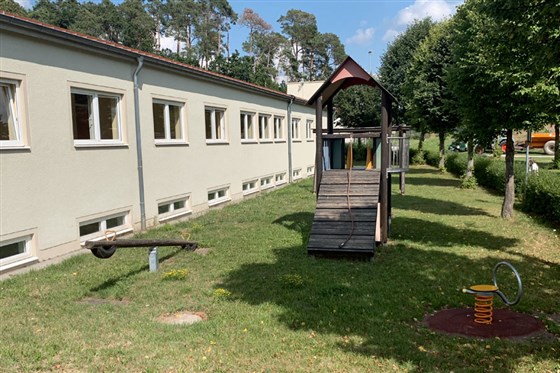 Direkt am Kabinentrakt mit Rutschen und Schaukeln