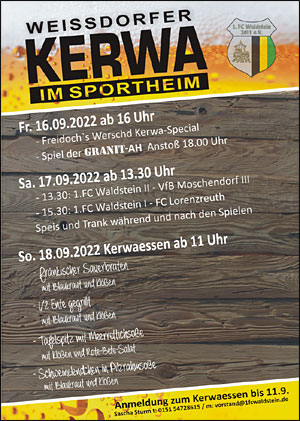 11:00 Uhr: Kerwa-Essen im Sportheim (bitte vorbestellen/anmelden)