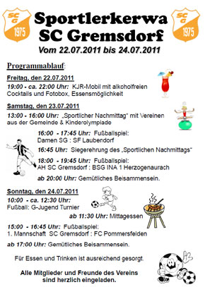 Ansprechpartner: Thomas Lösel, Tel. 0179/4923634, EMail: thomas.loesel@sc-gremsdorf.de