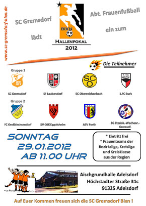 Am 29.Januar 2012 ist es soweit. Unsere Frauenfußballabteilung, die SC Gremsdorf Bixn, veranstaltet ihr erstes eigenes Hallenturnier.
