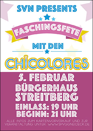 Die SpVgg Neideck Muggendorf präsentiert zum vierten Mal in Folge im Streitberger Bürgerhaus die Kult-Faschingsfete mit den Discofaust-Experten Chicolores!