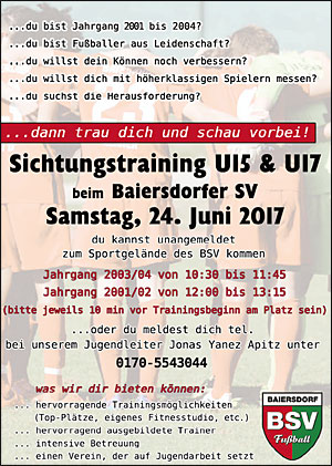 Interessierten Spieler für die kommende U15 und U17 vorbeikommen.