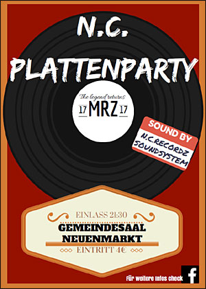 Auf geht's zur Neuenmarkter Plattenparty am 17.03.2017 in den Gemeigesaal Neuenmarkt.