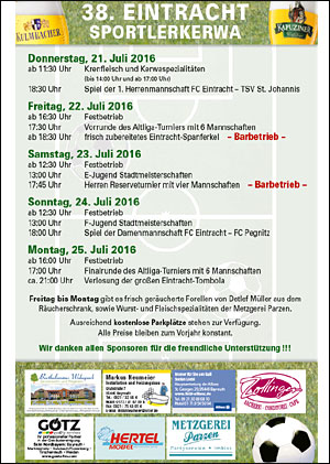 Die Eintracht aus Bayreuth richtet zum 38. Mal die traditionelle Kerwa aus und auch in diesem Jahr ist das Programm mit Highlights bestückt.