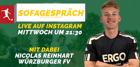 Wir bringen Euch die herausragenden Akteure des Amateurfußballs aus unserer Region direkt auf Euer Smartphone. Nämlich über Instagram. Über unseren Kanal anpfiff.wuerzburg quatschen wir regelmäßig mit Spielern, die jüngst auf sich aufmerksam gemacht haben. Heute ist Nicolas Reinhart vom Würzburger FV live auf dem virtuellen Sofa. Schaltet rein live um 21:30 Uhr auf unserem Instagram-Kanal.