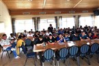 So passten also die Rahmenbedingungen für die 39 Teilnehmer, unter denen zwei Frauen, elf Schiedsrichter mit zwölf Jahren und acht mit 13 Jahren waren. Der Altersdurchschnitt der an der Schiedsrichterei Interessierten betrug 19 Jahre. Ein guter Schritt in Richtung Zukunftsfähigkeit der Zunft in unserem Kreis. "Unser Augenmerk wird und muss jetzt sein, die neuen Schiedsrichter möglichst schnell an die Pfeife zu bekommen.", sagt Michael Demus. Bei einer solch hohen Anzahl bedeutet das natürlich auch immer einiges an manpower und Organisation, da die Neuen gerade in den ersten Wochen bzw. ersten Einsätzen von erfahrenen Referees begleitet werden sollen. Nach den ersten Einsätzen muss das Augenmerk vor allem darauf liegen, die Neuen auch auf Dauer an der Pfeife zu halten. Denn die Halbwertszeit einer Schiedsrichter-Karriere hat im Vergleich zu früheren Zeiten deutlich abgenommen. Aber dieses Problem teilt sich die Schiedsrichterei mit den Fußballern.
