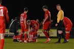 Der infolge einer Slapstick-Einlage entstandene 1:1-Ausgleichstreffer durch Gäste-Akteur Felix Voigt (l., in rot) ließ fassungslose Gesichter bei der Kornburger Defensive zurück.