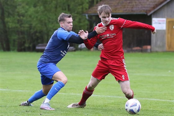 Neu bei der DJK: Felix Bendel (li.) - hier im Trikot des FC Augsfeld gegen den Krümler Max Schorr.