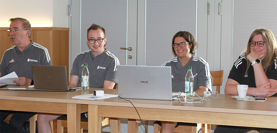 BFMA-Vorsitzender für Oberfranken Jürgen Röthig, sein Sohn Fabian (Frauen-Kreisbeauftragter Spielkreis 3), Frauen-Bezirksspielleiterin Bezirk Oberfranken Andrea Kleylein-Jüttner und Frauen-Kreisbeauftragte Spielkreis 1 Ramona Lindner führten durch die Tagung, die alle anwesenden Vereine auf das Herzlichste begrüßten. Am Vormittag waren die Vertreter der Vereine der Kreisligen und Kreisklassen und am Nachmittag der Frauen Bezirksoberliga und den beiden Bezirksligen Ost und West eingeladen worden. Vom Gastgeber 1. FC Redwitz richtete die neue Frauen-Spielleiterin Daniela Rech Begrüßungsworte an die Anwesenden.