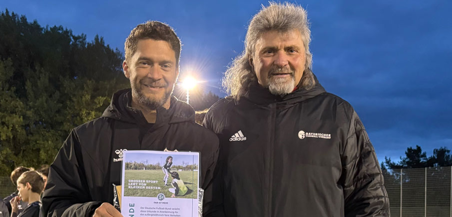 Neben der warmen Worte gab es auch vom DFB und BFV im Rahmen der Aktion „Fair ist mehr“ eine Prämierung für diese sehr sportliche Geste. Kreisjugendleiter Peter Kuhn überreichte im Namen des BFV ein „Fair ist mehr“-Handtuch, eine Fair-Play-Urkunde sowie ein Dankesschreiben des BFV-Vizepräsidenten Jürgen Pfau und freut sich über das Handeln des Trainers: "Diese besondere Ehrung zeigt, dass Fairness, Ehrlichkeit und Respekt auch im emotionalen Fußballalltag einen hohen Stellenwert haben – Werte, die Frank Mauer in diesem Moment in beeindruckender Weise vorgelebt hat."