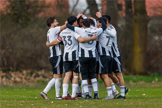 Schlusslicht SV Eyüp Sultan gab derweil ein Lebenszeichen ab und bezwang den ASV Veitsbronn-Siegelsdorf ebenfalls mit 1:0. Mahfouz Moumouni (m.) gelang vom Elfmeterpunkt der entscheidende Treffer, weshalb er sich anschließend von seinen Mitspielern feiern lassen durfte.