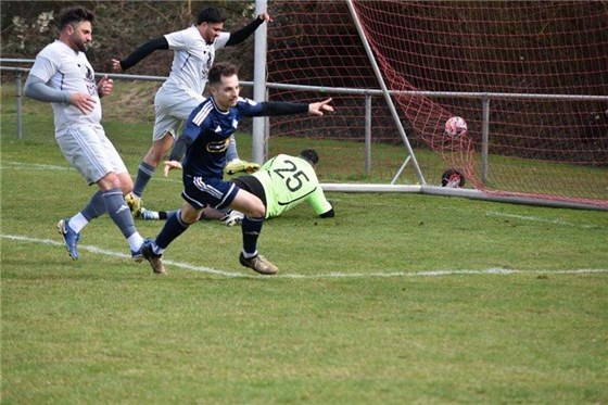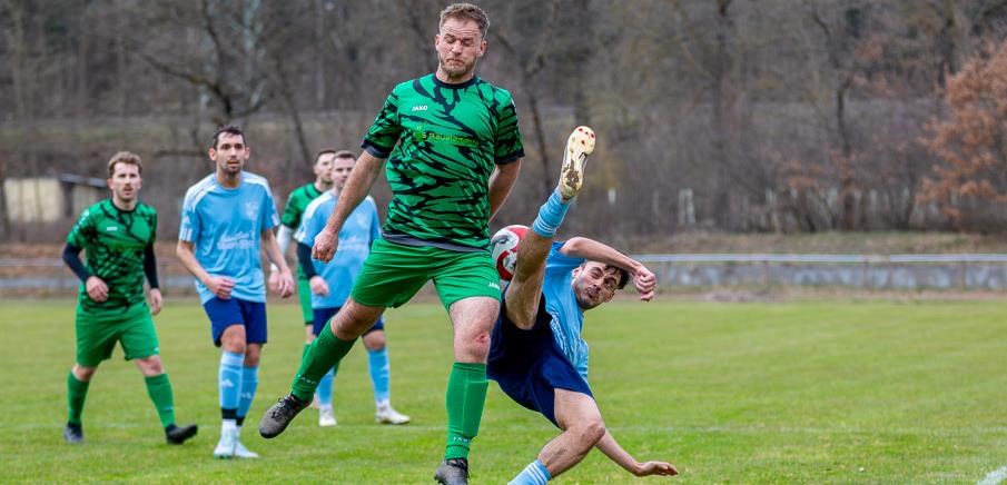 Der FC Stein um Kapitän Denis Esposito (in blau) drehte gegen den ASV Weinzierlein bis zur Halbzeitpause einen 0:1-Rückstand in eine 2:1-Führung und war nach dem Ausgleich von Routinier Daniel Pröpster lange auf Punktekurs, ehe Lucas Schmutzer kurz vor Schluss zum 3:2-Siegtreffer für den Primus einnetzen konnte.