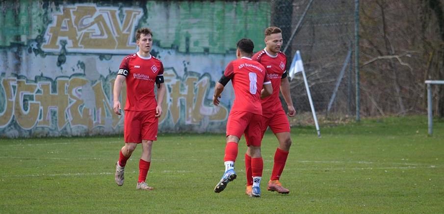 Ein spannendes Mittelfeldduell lieferten sich der ASV Buchenbühl (in rot) und die DJK Falke, wobei die Gäste mit 1:0 und 2:1 führten, bevor Pascal Beisenwenger bereits vor der Pause via Doppelpack zum 3:2-Endstand traf und seinem neuen Trainer Francesco Restino beim ersten Auftritt drei Zähler schenkte.