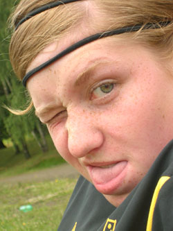 Der Fußballplatz war ihr zweites Zuhause. Samstag und Sonntag gehörten meist der Jagd nach dem runden Leder. Kickte Larissa Grune zunächst noch gemeinsam mit den Jungen im heimischen Neuses um die Wette, so wurde sie im zarten Alter von 13 Jahren von Anita Petermann entdeckt und kurzerhand zum SV Reitsch für die Mädchen-Mannschaft angeworben. Bei den C-Juniorinnen hinterließ das sympathische Mädchen mit dem „starken Bumms“ sofort einen derart überzeugenden Eindruck, dass sie binnen kürzester Zeit der Kreisauswahl Kronach unter Trainer Lorenz Richter angehörte. Bereits in ihrer ersten Saison für den SV Reitsch gelang ihr, die aufgrund ihres enormen Talents des öfteren bei den B-Juniorinnen zur Unterstützung aushalf, mit der U 17 der Aufstieg in die Bayernliga. Technisch äußerst versiert interpretierte sie die Rolle des Liberos in den Nachwuchsmannschaften des SVR derart überzeugend, dass sich Larissa Grune schon zur Saison 2006/07 gerne einer Doppelbelastung aussetzte. Während sie sonntags für die Mädchen in der Bayernliga die Defensive dirigierte, lief sie samstags in der Landesliga für die Frauen auf. Läuferisch war sie – wie Spielleiterin Karola Herrmann schilderte – indes wahrlich kein Aushängeschild. „Die Klöße von Oma Renate haben ihr immer zu gut geschmeckt“, huscht ein kurzes Lächeln über das Gesicht der Spielleiterin in Gedanken an die lebensfrohe, stets gut gelaunte junge Frau, die immer einen lockeren Spruch auf den Lippen hatte und nicht nur ihre Mitspielerinnen mit ihrer allgegenwärtigen Fröhlichkeit mitreißen konnte. „Hauptsache braun werden“, quittierte sie beispielsweise eine Entscheidung des Trainers, als sie während eines Auswärtsspiels bei hochsommerlichen Temperaturen zunächst auf der Auswechselbank Platz nehmen musste. Auswärtsfahrten wurden mit der schlagfertigen Schülerin ohnehin nie langweilig. Nach Röslau – wo der Sportplatz „Auf der Hut“ heißt – reiste Larissa Grune, die die elfte Klasse des Caspar Zeus Gymnasiums in Kronach besuchte – mit einer eigens mitgebrachten Kopfbedeckung an, um zu verdeutlichen, dass sie ebenfalls „auf der Hut“ sei. Mit der jungen Frau mit den vielen Namen wurde es einfach nie langweilig. Wurde sie in Mannschaftskreisen zumeist nur Lara genannt, so hörte sie ebenso auf den Namen Lena Grüne, nachdem sie auf diese falsche Weise einmal in der Tagespresse betitelt wurde.