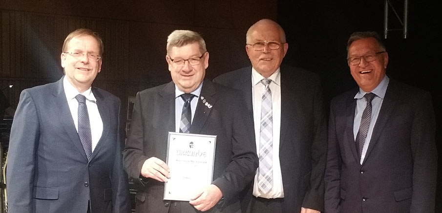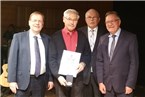 BFV-Präsident Dr. Rainer Koch (re., hier mit Obmann und Organisator Uwe Storch) beglückwünschte die Gruppe Steigerwald zu ihrem Jubiläum.