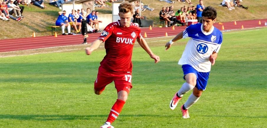 Leonard Langhans im Duell gegen Marc Häntschke (Würzburger FV).