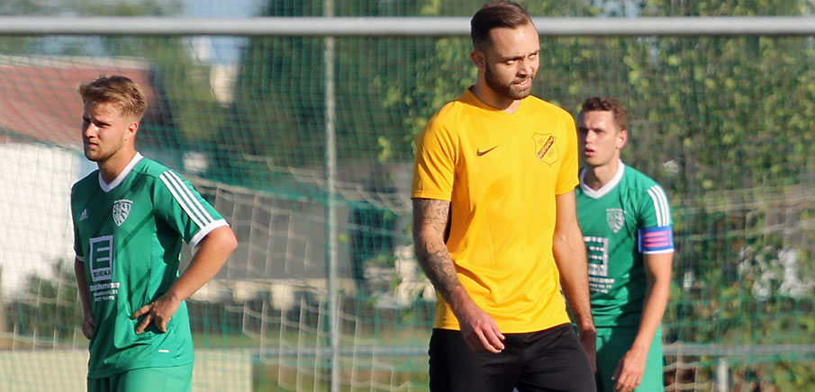 Der SF Großgründlach tat sich gegen den SV Raitersaich ll sichtlich schwer und mussten gleich dreimal einen Rückstand durch Florian Müller (im Hintergrund) hinterherrennen.